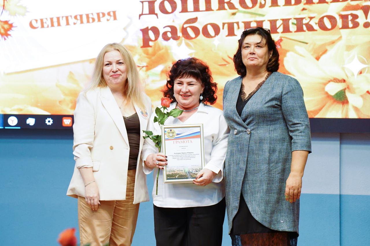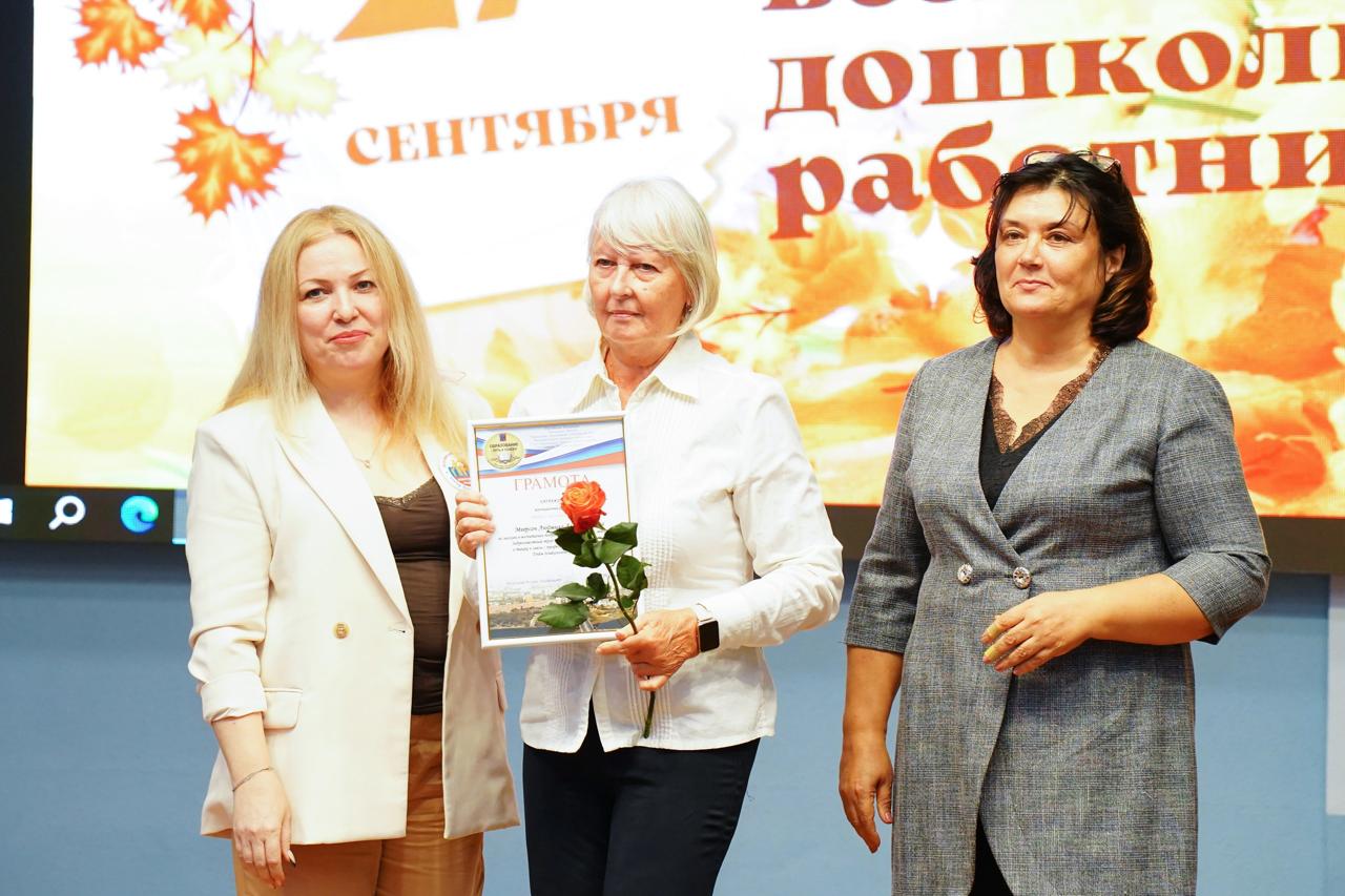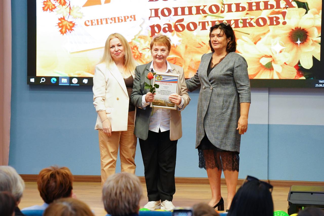 Особое место в мероприятии заняло чествование тех сотрудников , кто отдал работе в дошкольном образовании 40 лет и больше. Начальник отдела образования Микова Ирина Юрьевна отметила значимость представителей каждой профессии дошкольников, их вклад в развитие наших детей.