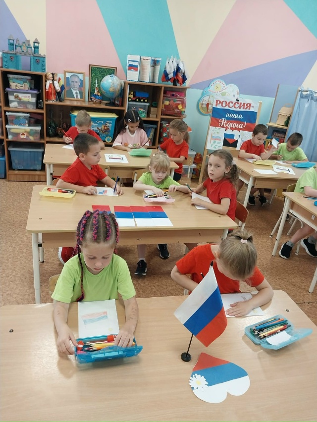 Воспитанники получают начальные знания о своей стране, ведь очень важно воспитывать у детей уважительное отношение к символам нашей страны.