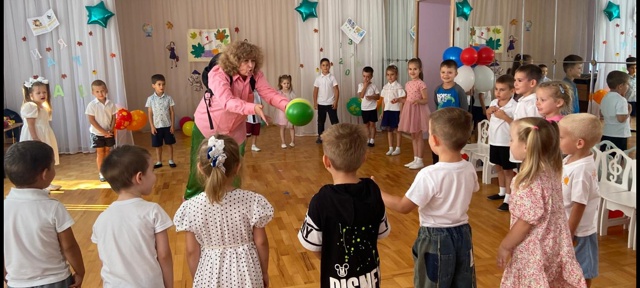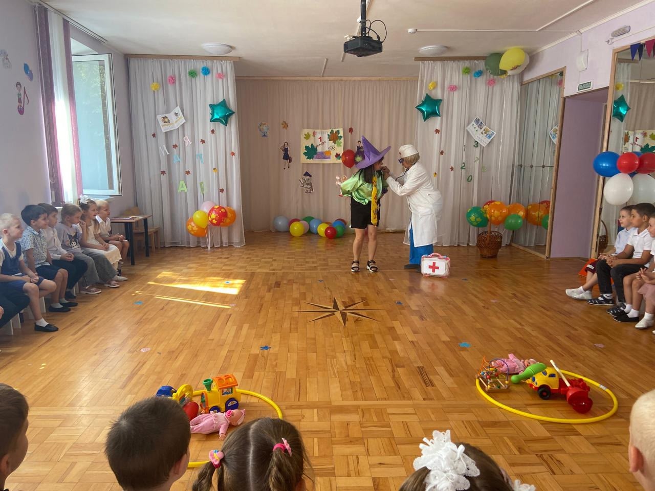 В нашем детском саду первый день нового учебного года прошел ярко и эмоционально. В гости к ребятам приходили Домовенок Кузя, Незнайка и Доктор Пильлькини .. Вместе с ребятами они играли, веселились, повторяли буквы и цифры и устроили веселую дискотеку.