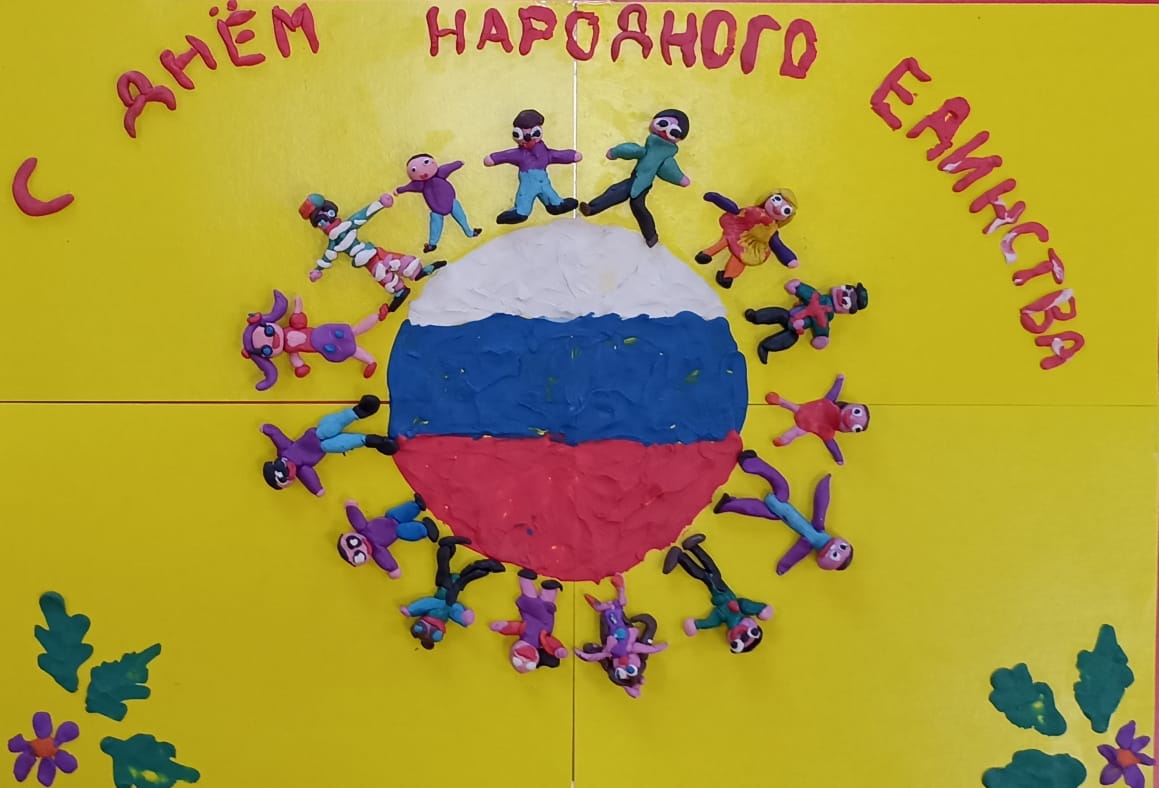 В преддверии праздника Дня народного единства воспитанники подготовительной логопедической группы №1 сделали коллективную работы с помощью лепки"Мы все едины."
