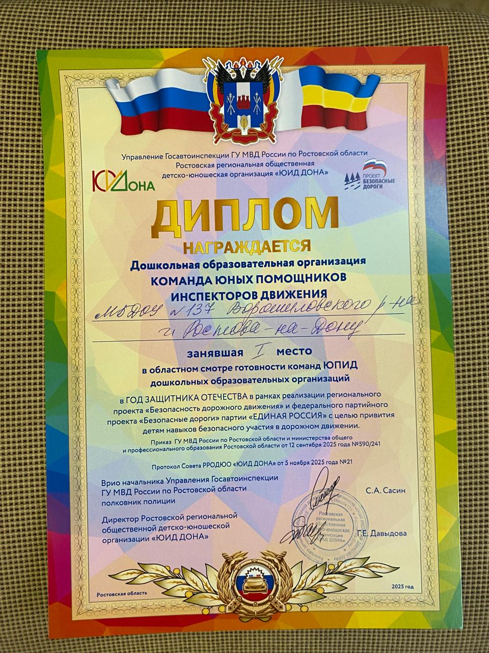 7.11.25 дошкольные учреждения города Ростова-на-Дону, ставшие победителями в районных этапах, приняли участие в зональном этапе Областного смотра готовности команд юных помощников инспекторов движения, в котором приняли участие победители муниципальных конкурсов г. Ростова, Батайска и Аксайского района на базе детского сада N 4 г. Аксая. Именно Центры безопасности дорожного движения-опорные детские сады задают ритм и уровень работы в формировании основ безопасности участников дорожного движения. В жюри Галина Егоровна Давыдова- руководитель детско-юношеской молодежной общественной организации «ЮИД Дона», полковник милиции в отставке, Латышева Тамара Владимировна педагог-опганизатор областной инновационной площадки «Точки роста ЮИДовцев Дона:Безопасность. Патриотизм. Интерактив» ЦДТ Ворошиловского района г. Ростова-на-Дону, куратор деятельности команд ЮПИД, представители ГосАвтоинспекции Аксайского района. По итогам просмотра 13 конкурсных работ в числе победителей стали ЦБДД N137, 192, 66 г.Ростова-на-Дону и детский сад N10 г. Батайска. Поздравляем наших победителей и желаем новых значимых побед!